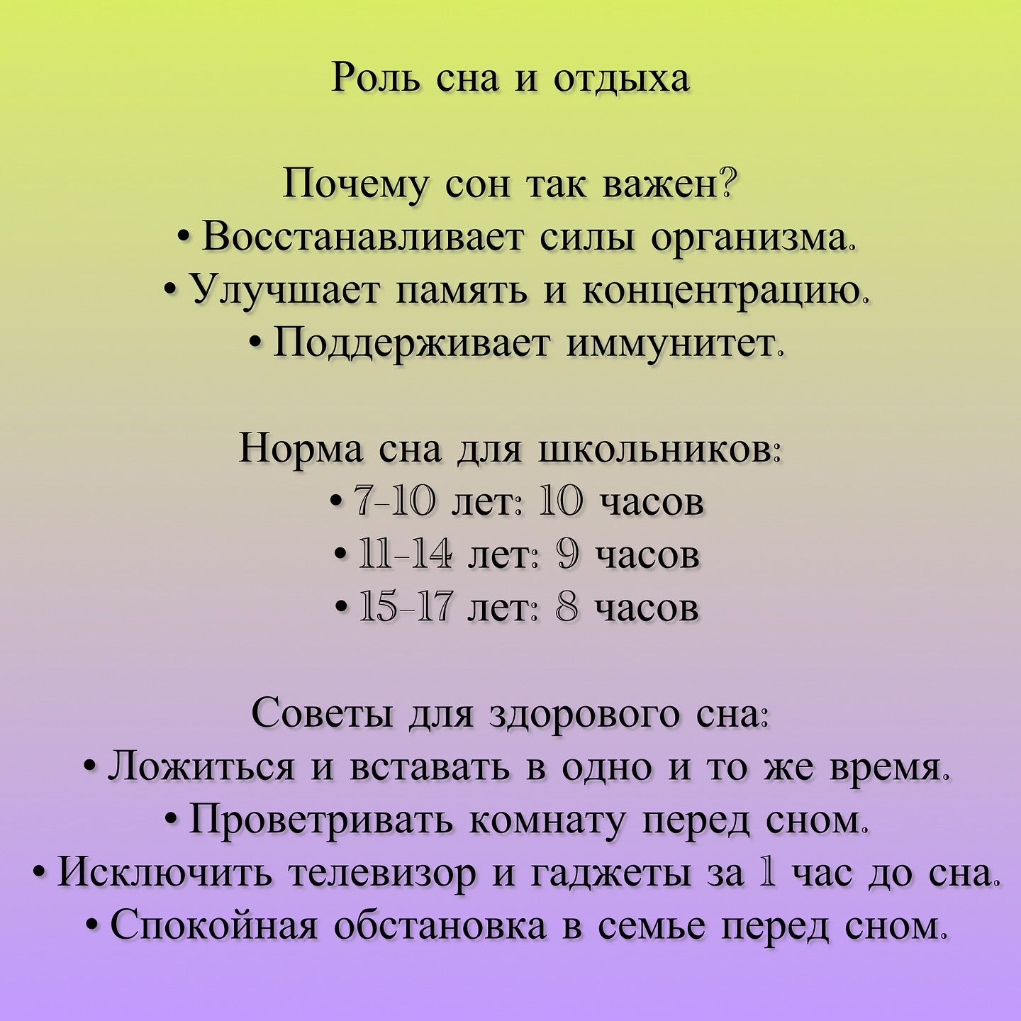 “Режим дня для школьников”