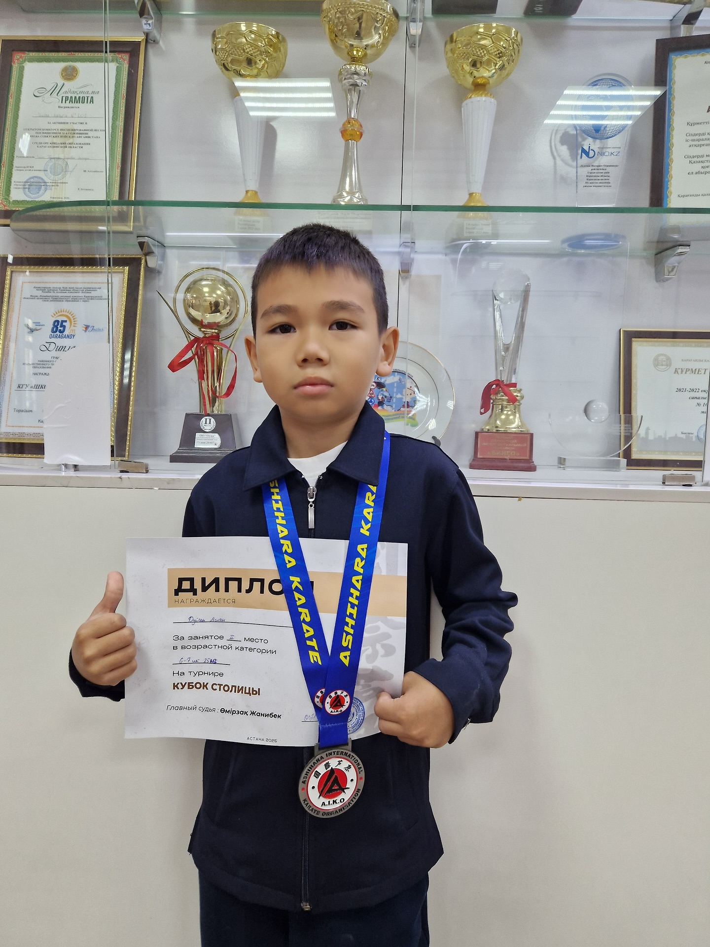 Поздравляем ученика 2М класса Дүйсена Аслана с занятым 2 местом Кубке столицы по карате!