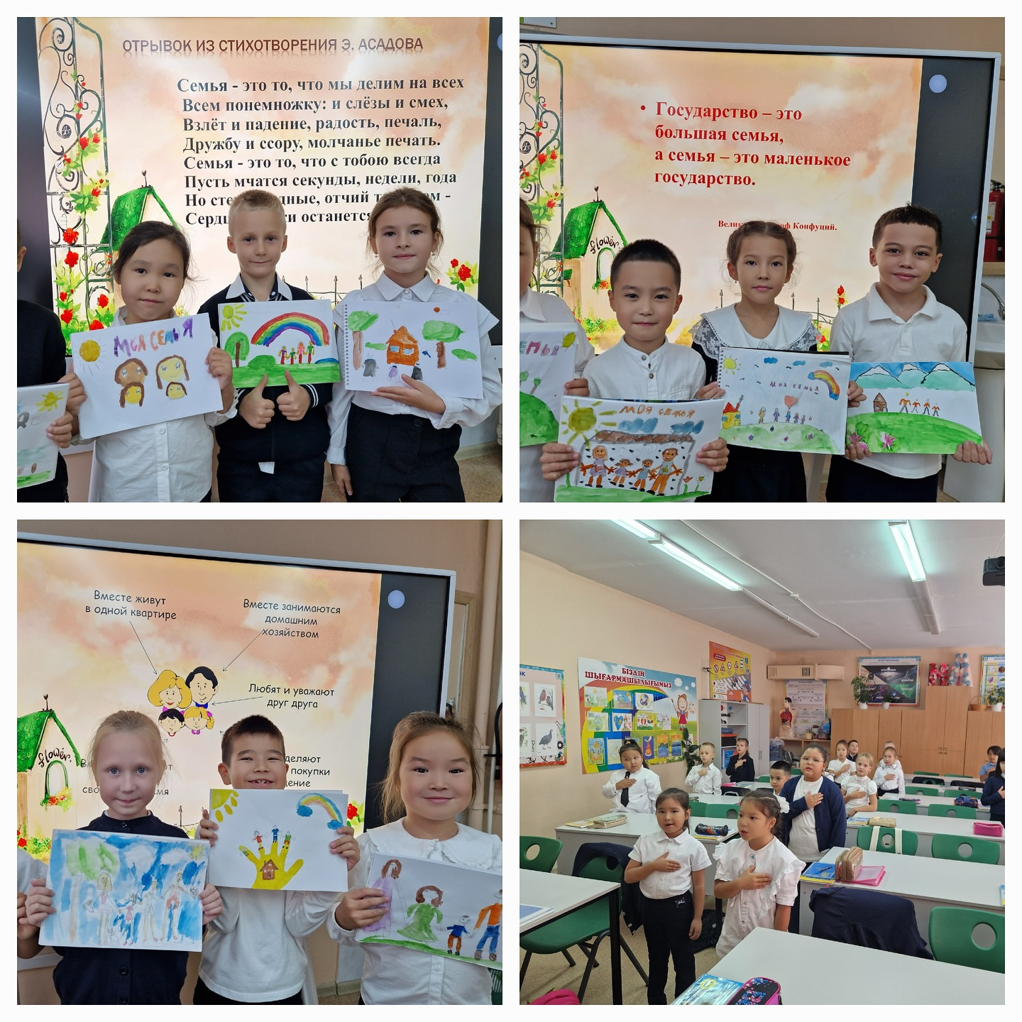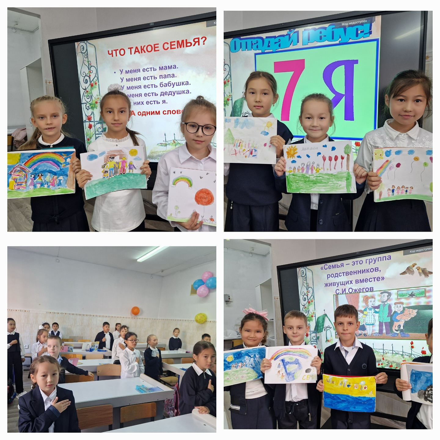 В рамках Дня семьи во 2Ж классе прошел классный час по привитию семейных ценностей. Дети еще нарисовали свою семью и поделились семейными традициями.