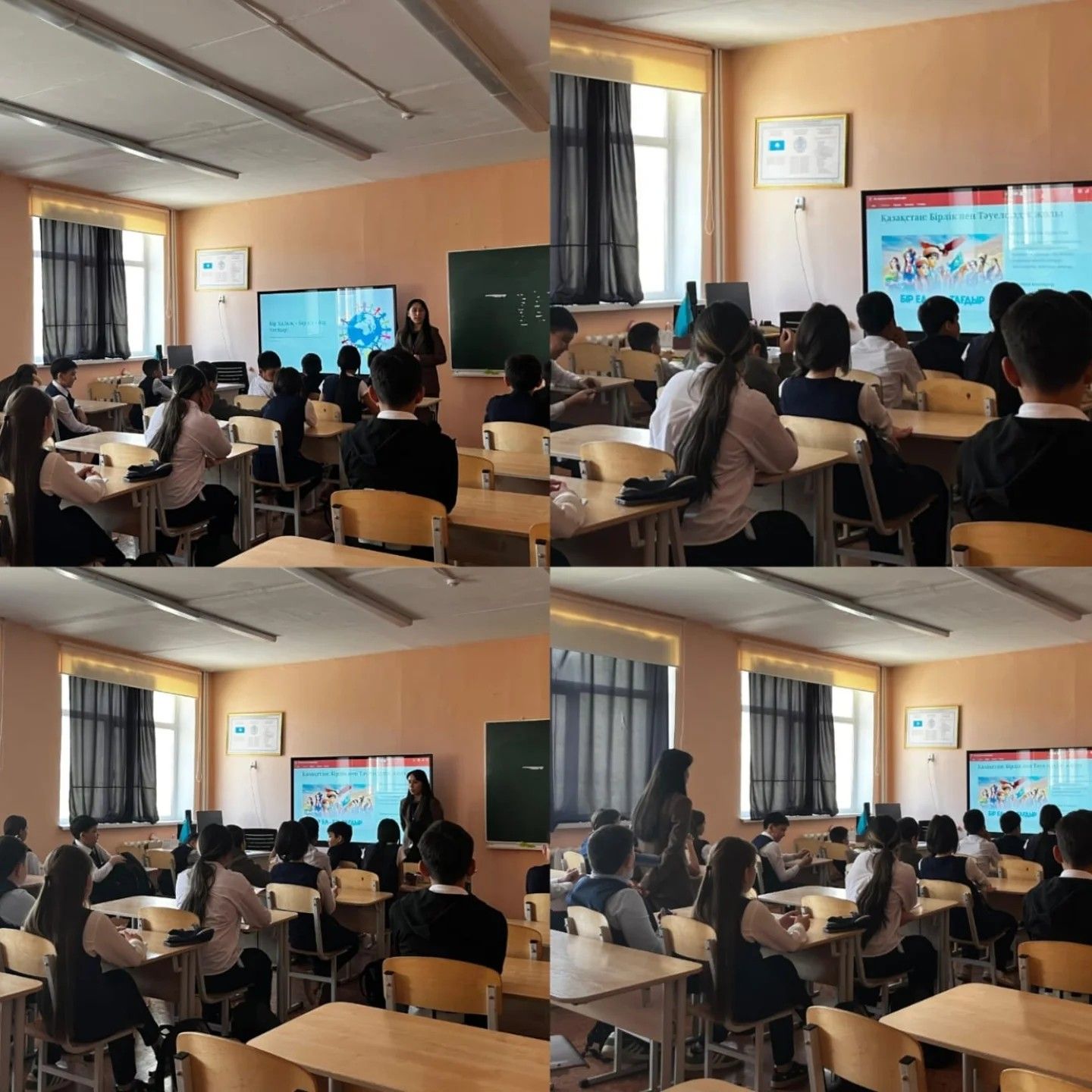“Бір халық – бір ел – бір тағдыр” тақырыбында 6 «А» сыныбында сынып сағаты өткізілді. Оқушылар бірлік, татулық және Отанға деген сүйіспеншілік туралы ой бөлісті.…