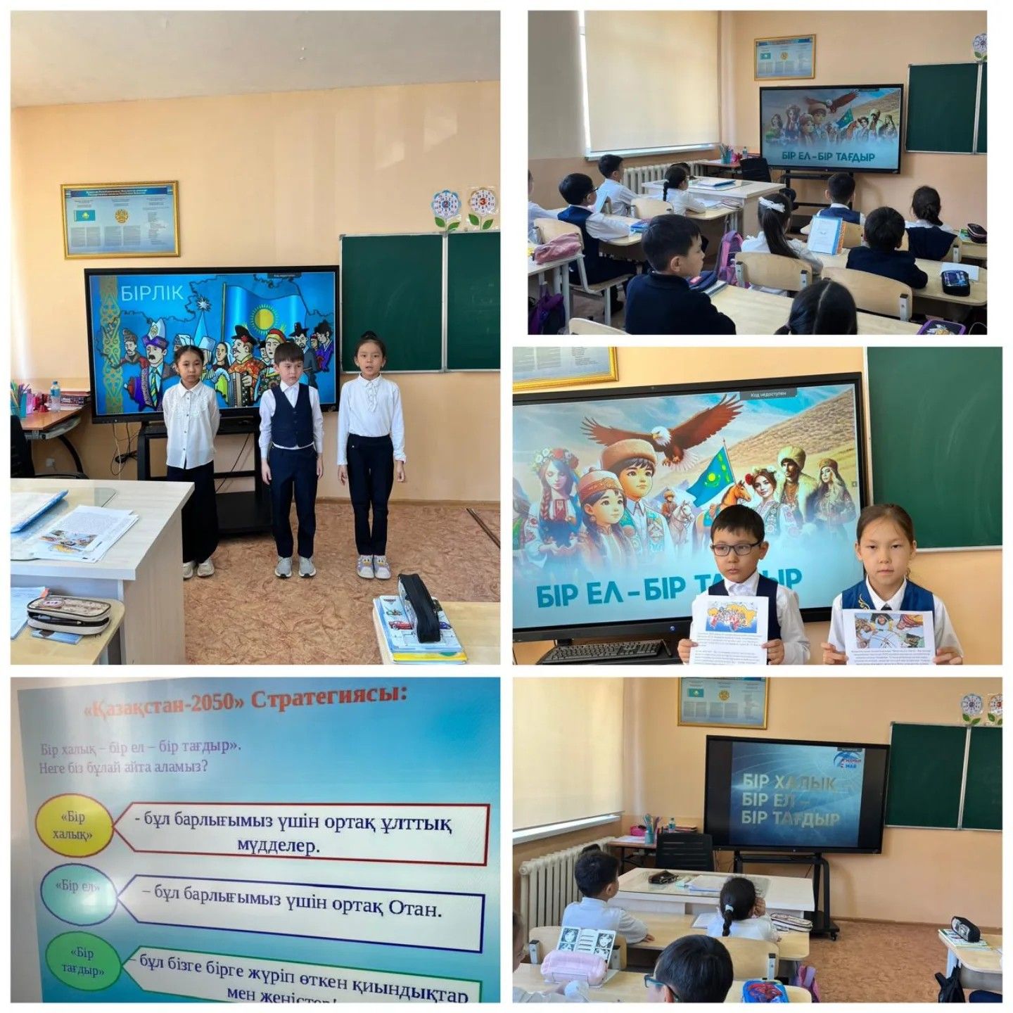 2 ”Б” сыныбында 1 мамыр- Қазақстан халқының бірлігі күніне орай "Бір халық-бір ел-бір тағдыр" тақырыбында сынып сағаты өтті. Сынып жетекші: Джолимова Ж.З