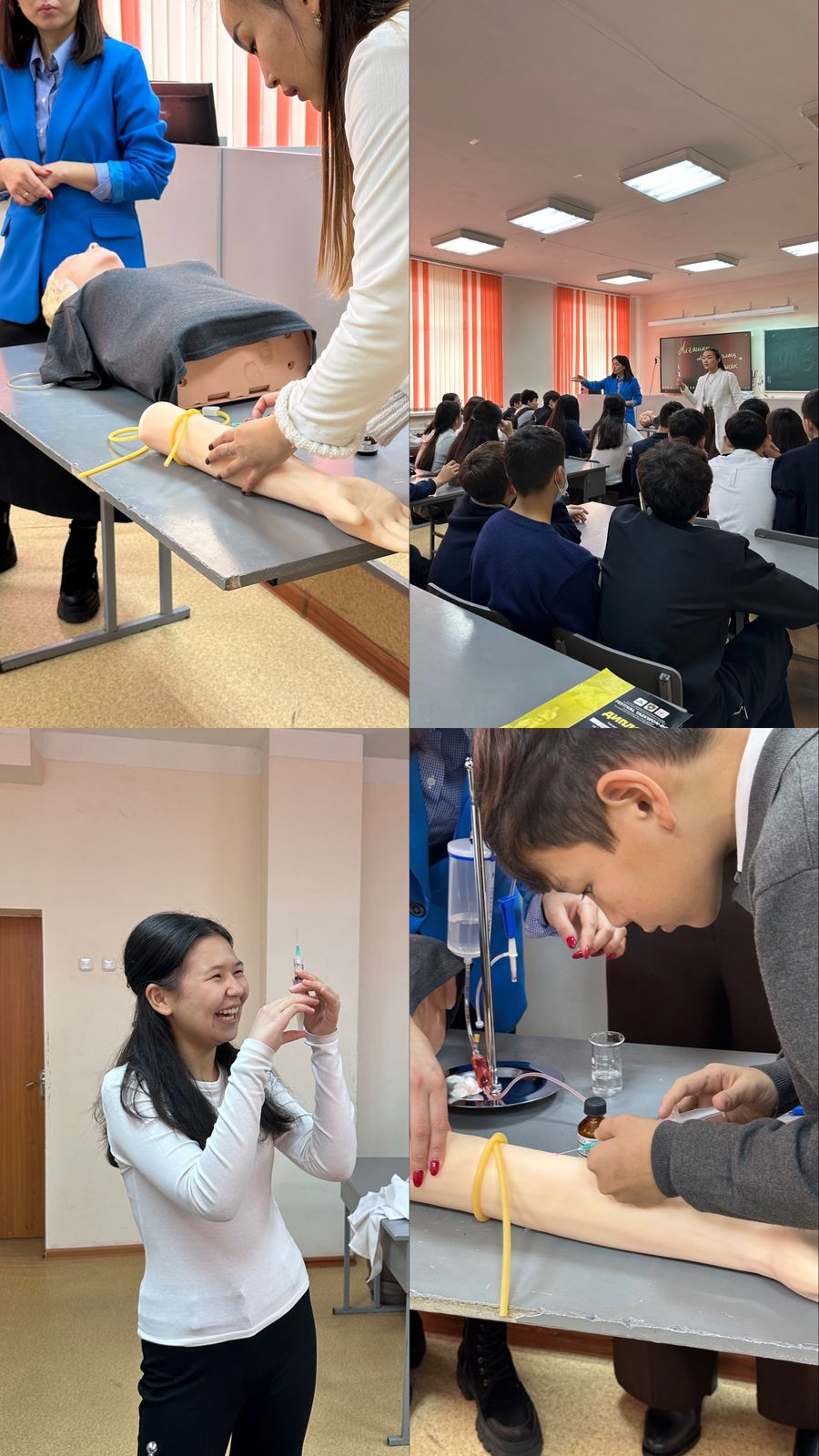 9 желтоқсан күні медициналық бағыттағы сыныптарға кіретін 9 "Б" және 8 "Ғ" сынып оқушыларына «Алғашқы көмек көрсету және медициналық ине салудағы алғы шарттар» тақырыбы аясында түсіндіру сабағы өткізілді.