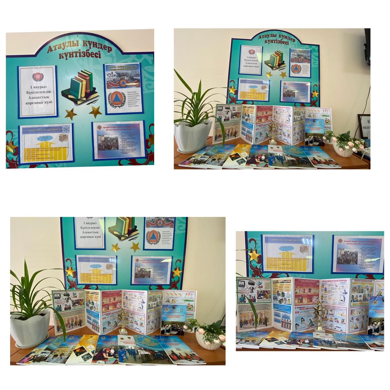 1 наурыз – Азаматтық қорғаныс күніне орай кітапханада атаулы күндер күнтізбесі ұйымдастырылды. ✅Мақсаты – төтенше жағдайлардың алдын алу, халықтың қауіпсіздігін қамтамасыз ету және азаматтық қорғаныс қызметінің маңыздылығын насихаттау.