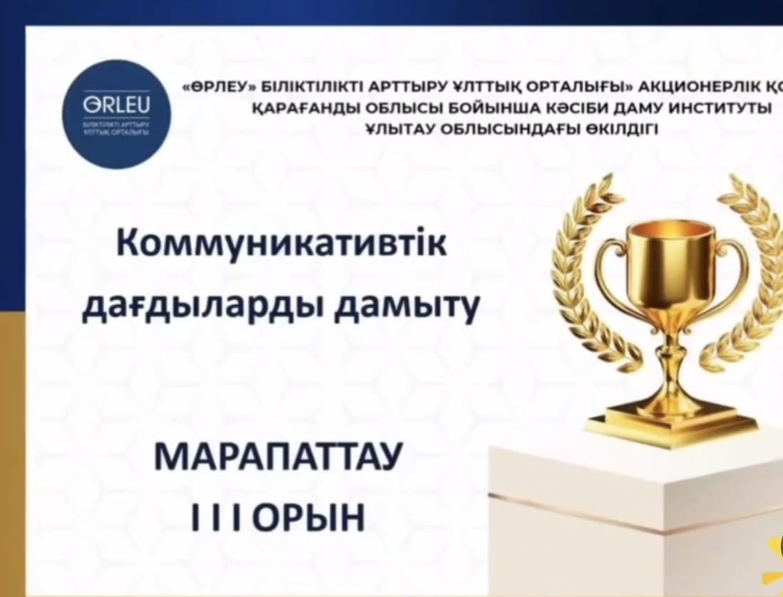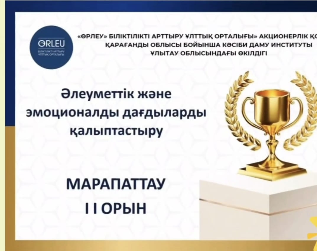 2025 жылдың 7 қарашасында "Өрлеу" БАҰО" АҚ Қарағанды облысы филиалының Ұлытау облысындағы өкілдігінде мектепке дейінгі ұйым педагогтеріне арналған Республикалық "Ойын сиқыры" байқауы өтті. Осы сайыстың қорытындысы бойынша 1 орынға ие болған педагог-психолог Махамбетова Сымбат Сериккызы. 2 орын иегері әдіскер Тур Ольга Валерьевна, 3 орын ие болған қазақ тілі мұғалімі Лукпанова Асел Шарипканкызы. Құттықтаймыз!