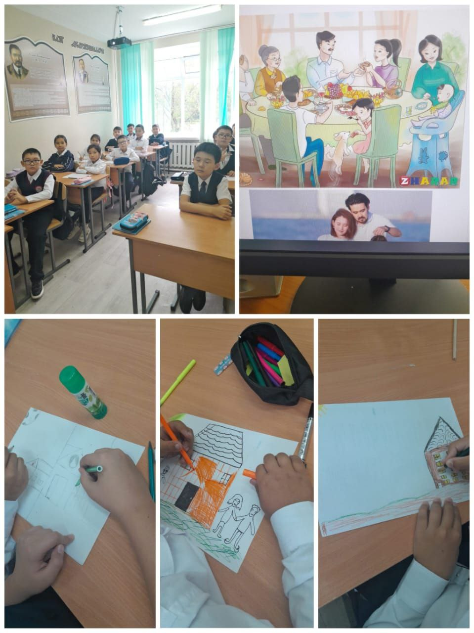 "Адал азамат" біртұтас тәрбие бағдарламасы аясында 8 қыркүйек күні 5 "Д" сыныбында "Жанұям - қорғаным, ата-анам - тірегім!" тақырыбында сынып сағаты өтті. Отбасы- шағын мемлекет! Әр бала үшін отбасы-махаббаттың, қамқорлықтың, шаттықтың ошағы. 5д сынып оқушылары тәрбие сағатында , өз отбасылары туралы әңгімелеп, шағын суреттер салды. #адал_азамат    #отбасы_күні