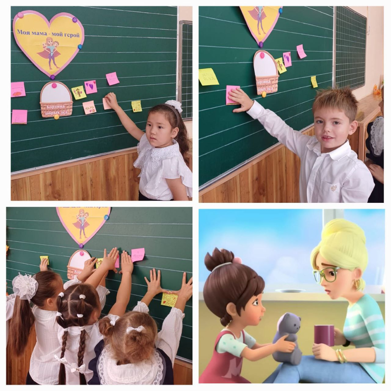 В 1"А" классе прошёл классный час на тему "Моя мама - мой герой". Ребята посмотрели познавательный мультфильм и пришли к выводу, что мамы, будучи нашими героями, тоже устают и нуждаются в помощи, поддержке и отдыхе. Все ребята собрали корзину добрых дел для своих любимых мам.