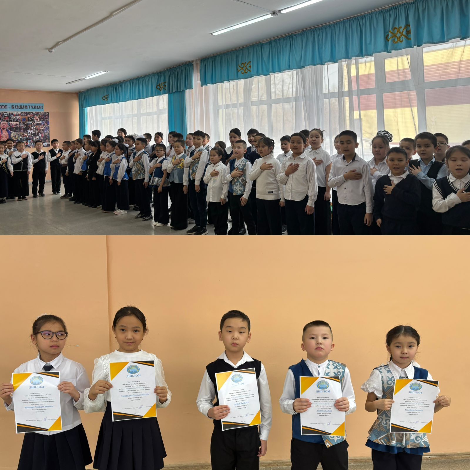 Бастауыш сыныптар арасында “Мектеп жарғысы - білім беру ұйымындағы тәртіптің негізі “ атты саптық жиыны өтті. Мектеп жарғысының мақсаты: Мектептегі білім беру үдерісін заңды ,әділ, қауіпсіз және тиімді ұйымдастыру.
