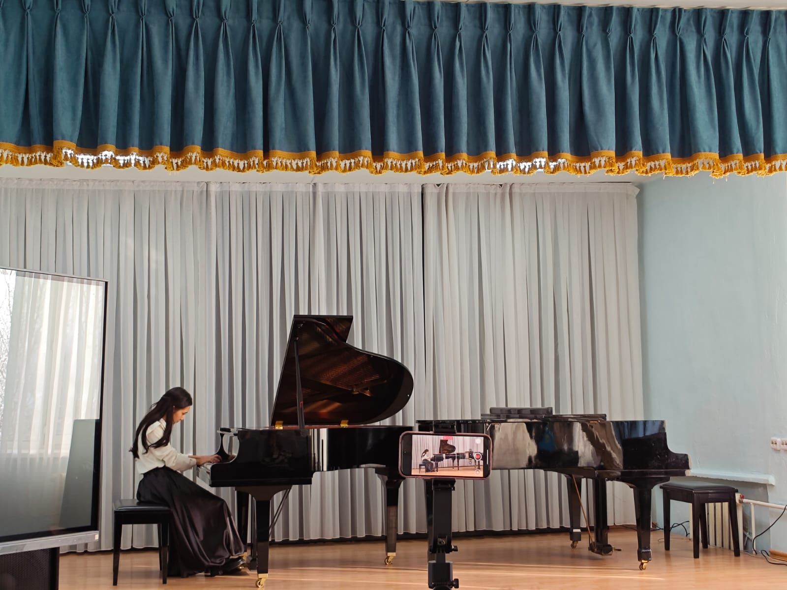 29 қаңтарда ынтымақтастық пен педагогикалық тәжірибе алмасу шеңберінде біздің мектепте мамандандырылған музыкалық мектеп интернаттың фортепиано бөлімінің оқушылары (оқытушы О.В.Токареваның сыныбы) өздерінің концерттік бағдарламарымен қонаққа келді. Концерттік бағдарламада әртүрлі сазгерлердің шығармалары шырқалды.Концерттен кейін ұстаздар мен оқушылардың арасында қызықты әңгіме өтті. Орындаушылар өздерінің тыңдаушыларымен өздерінің шығармашылық өмірлерінде болған қызықты оқиғалармен бөлісті.Концерт жақсы деңгейде өтті, біздің оқушылар мен ұстаздар әрдайым осындай шығармашылық ықтымақтастықпен келген қонақтарды қуана қарсы алды.