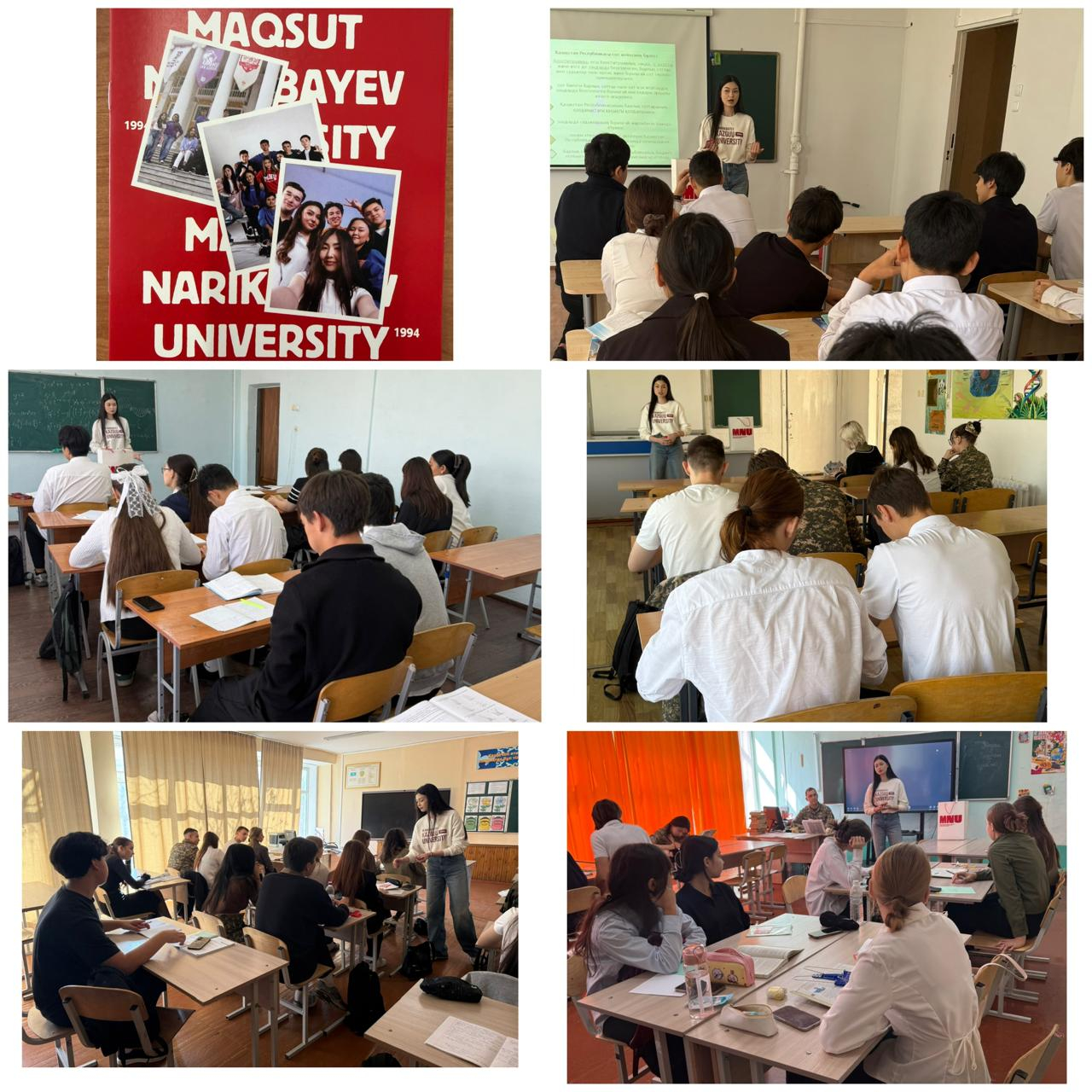 Түлектерге болашақ кәсіби құзыреттілік саласында кәсіптік бағдар беру бойынша көмек көрсету мақсатында 2025 жылдың 9 қазанында Maqsut Narikbayev University-нің өкілімен кездесу өтті.