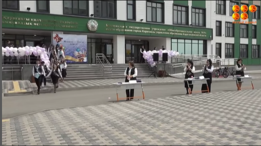 Қарағанды қаласындағы келешек мектептердің бірінде аттестат тапсыру сәттері: салтанатты әрі жылы атмосферада түлектер мектепті аяқтағаны туралы аттестаттарын алды.