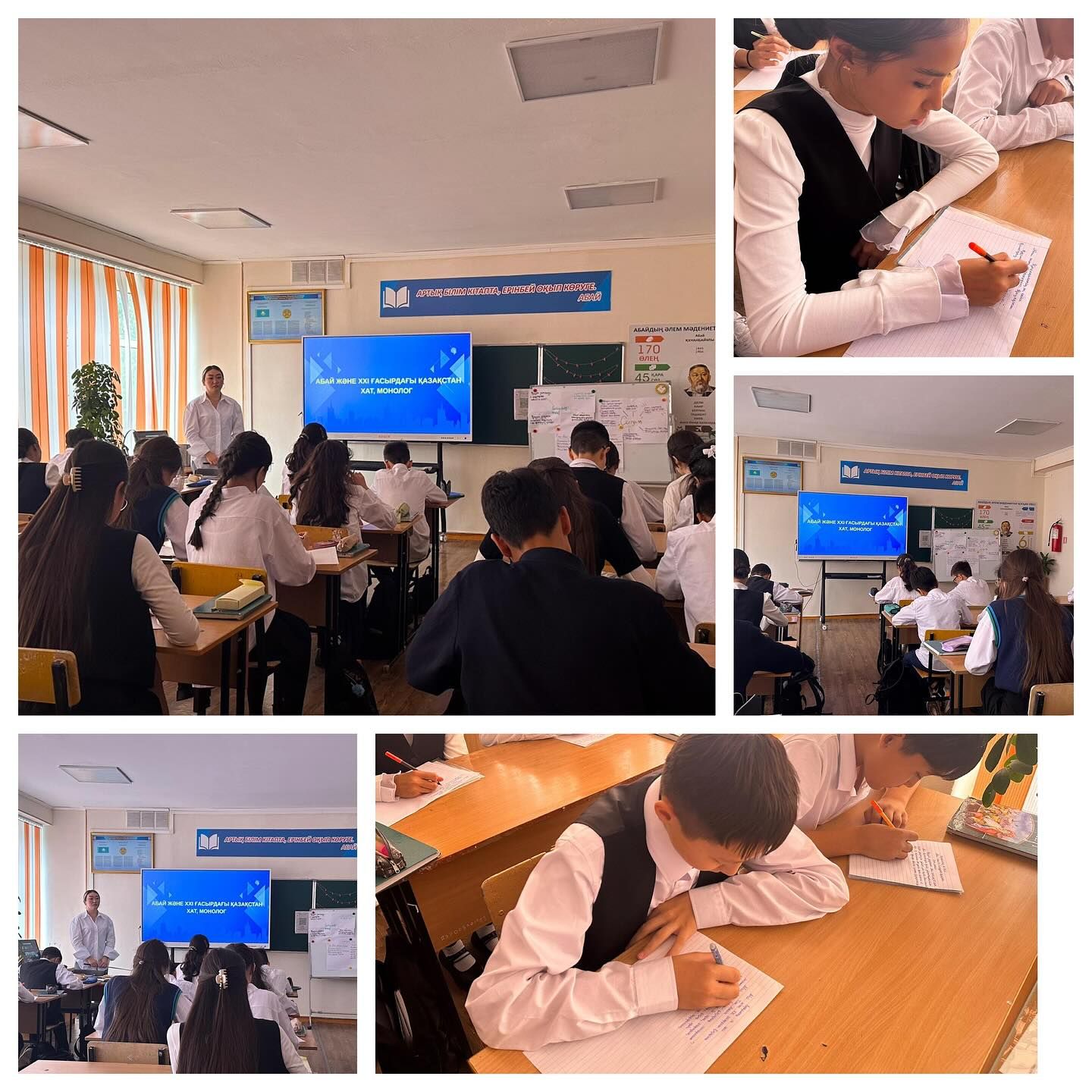 Қазақстан халқы тілдері күніне арналған іс-шаралар онкүндігі жоспары бойынша «Абай және ХХІ ғасыр Қазақстан» тақырыбында 8-сынып оқушылары хат, монолог жазды.