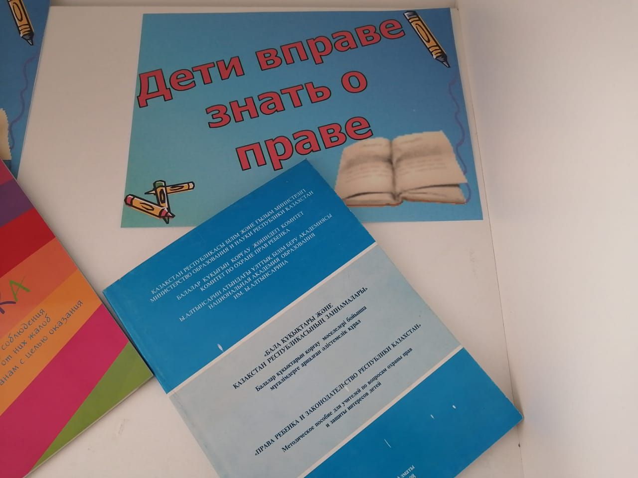 4 июня 2025 года согласно плану мероприятий в рамках Национальной Информационной Кампании «12 дней борьбы против эксплуатации детского труда» библиотека КГУ ОШ им.Г.Мустафина подготовила книжную выставку «Балалар заң туралы білуге құқылы – Дети вправе знать о праве». На книжной выставке собраны книги, которые познакомят вас с законодательствами Республики Казахстан по правам ребенка.