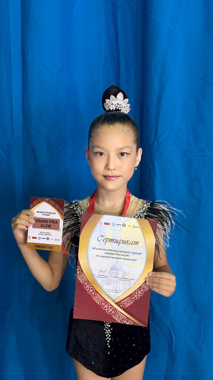 Классный руководитель Завьялова Оксана Александровна и учащиеся 4 "А" класса поздравляют САКЕНОВУ АРУЖАН с заслуженной  победой в Международном турнире “Grand Prix Alem” по художественной гимнастике, который прошёл в городе Астана.АРУЖАН завоевала призовое  2 место . Желаем юному  дарованию больших успехов и  дальнейших побед  !
