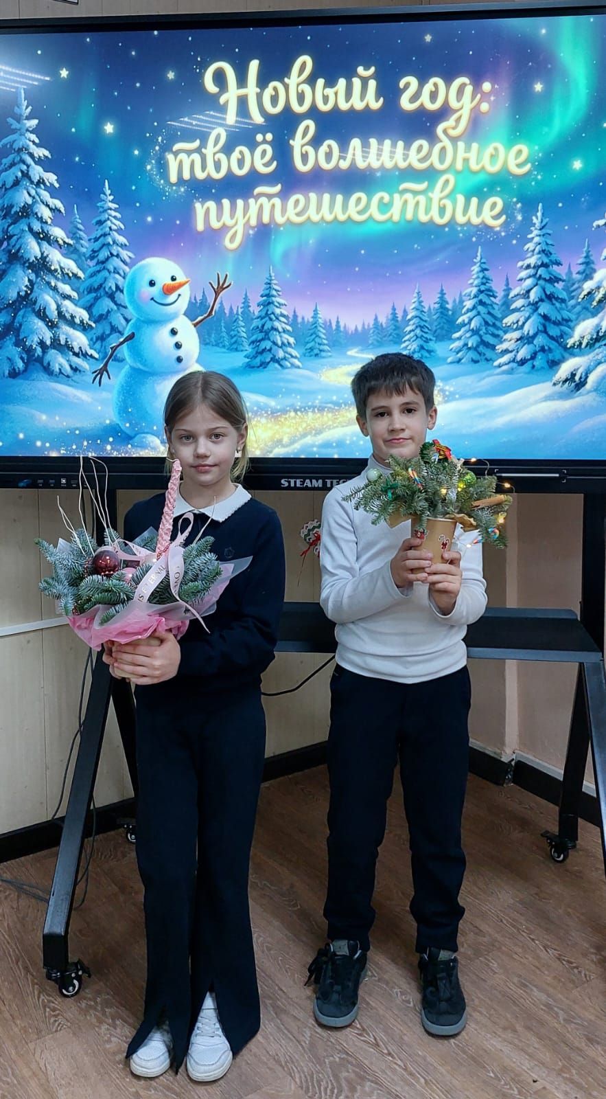 Среди участников — Калашиди Демис и Крылова Есения, учащиеся 2 «А» класса, которые представили икебаны из еловых веточек и огоньков.