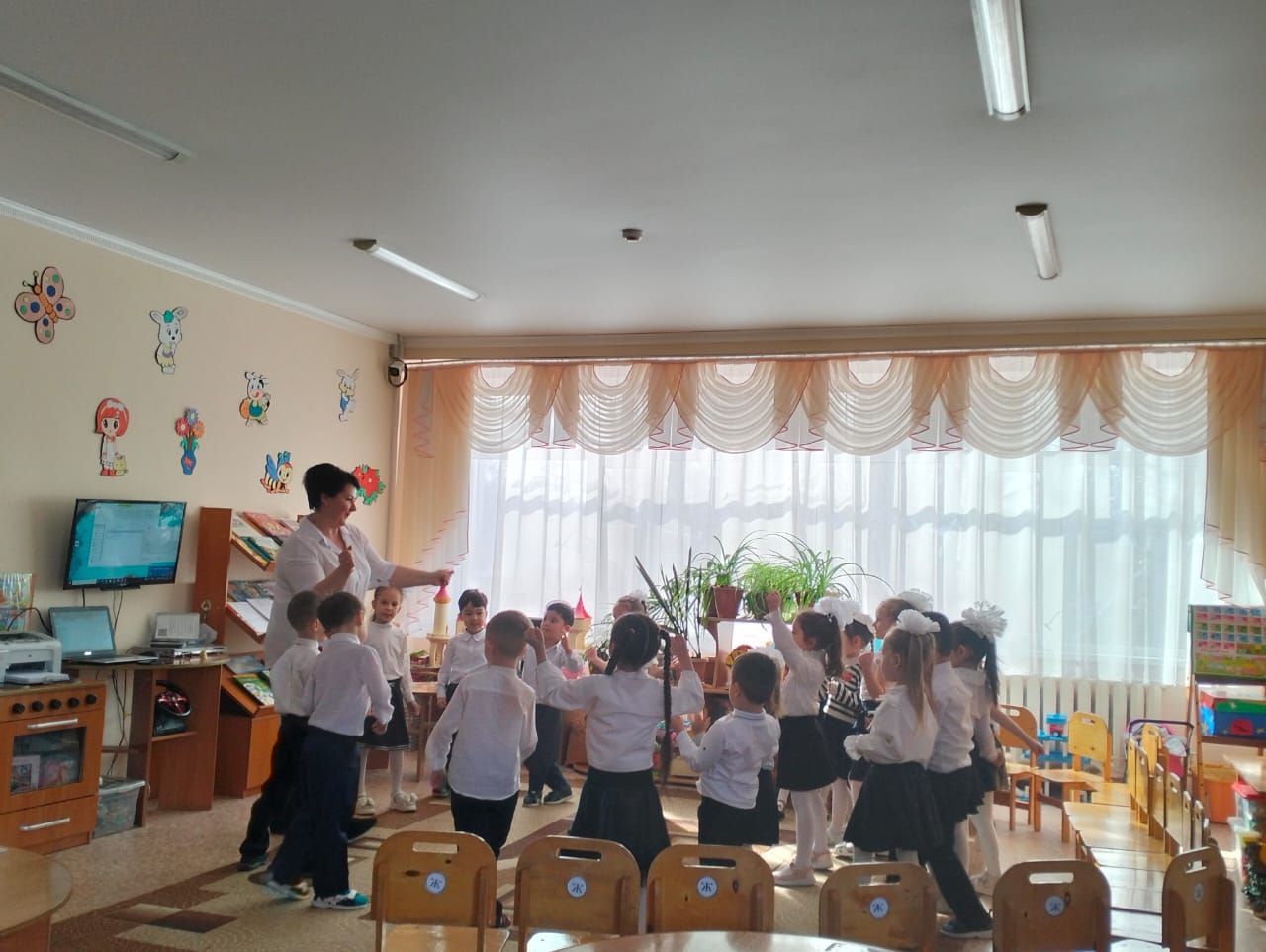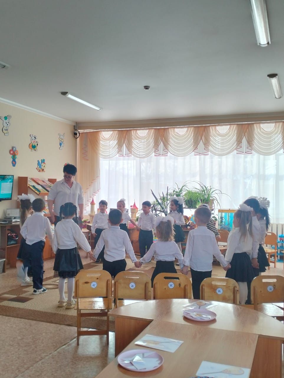 После его окончания Зарыкпаева А.А. и воспитатель обсудили вопросы, связанные с преемственностью развития музыкальных навыков будущих первоклассников. Игровые моменты в обучении играют важную роль в развитии познавательного интереса дошкольников, приобщению к культурам разных народов.