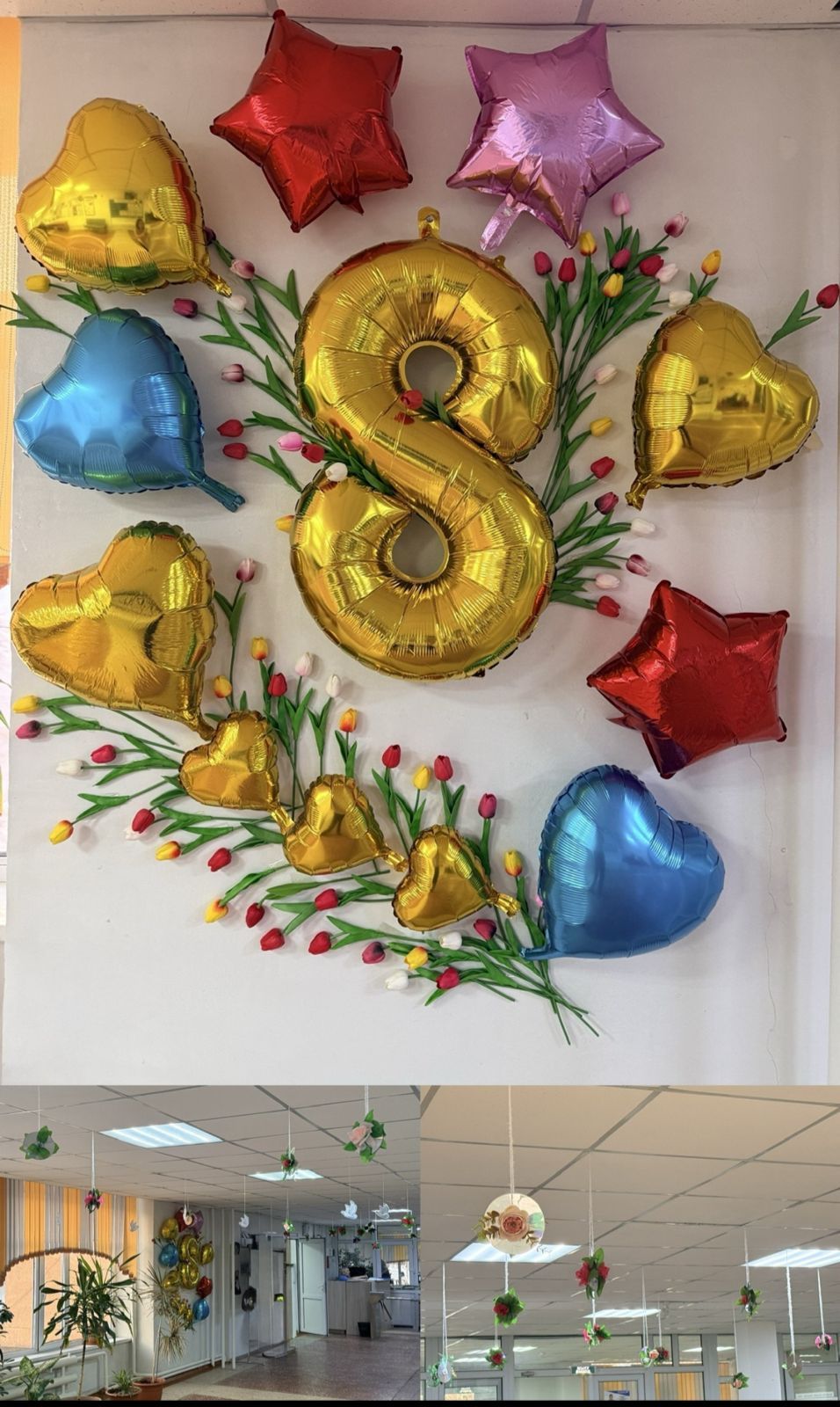 В преддверии Международного женского дня — 8 Марта в школе было подготовлено праздничное оформление