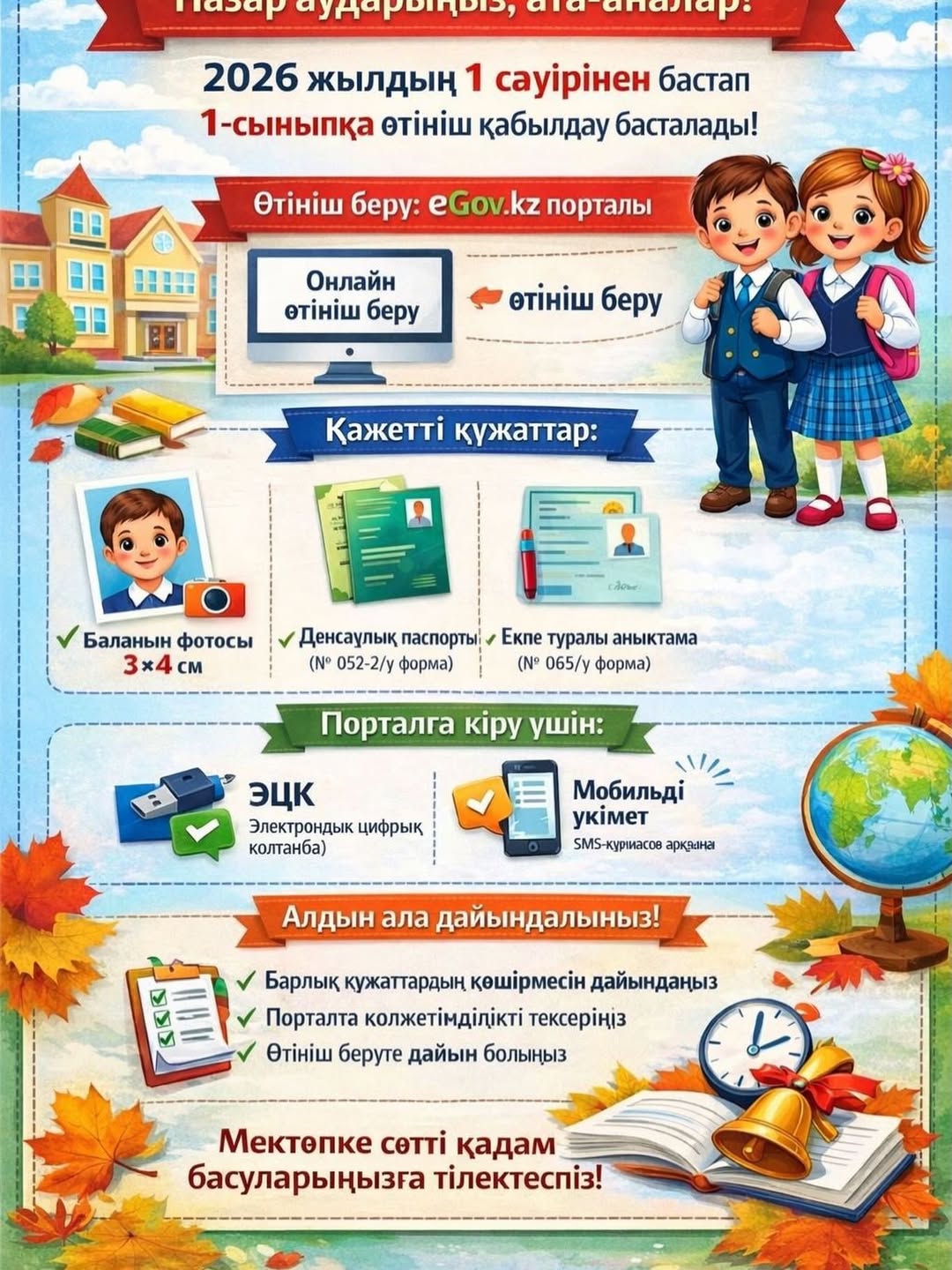 1- сыныпқа өтініш қабылдау басталады