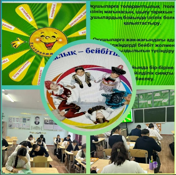 10.11.2025 ж. күні 9 “Б”сыныбында «Адал азамат» біртұтас тәрбие бағдарламасы аясында «Толеранттылық- бейбітшілік қадамы» тақырыбында сынып сағаты өткізілді.