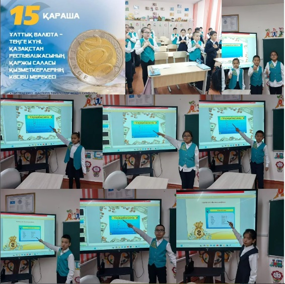 10.11.2025ж күні "Жақып Ақбаев атындағы ЖББМ"КММ 4"Ә"сыныбында 15-қараша Ұлттық валюта-теңге күні. "Теңге Тәуелсіздіктің тірегі "тақырыбында сынып сағаты өтті. Мақсаты:Оқушыларға ұлттық валюта теңгенің шығу тарихы туралы мағлұмат беру; Отанға ұлттық құндылықтарға деген мақтаныш сезімін қалыптастыру; Сынып жетекшісі:Б.К.Искакова