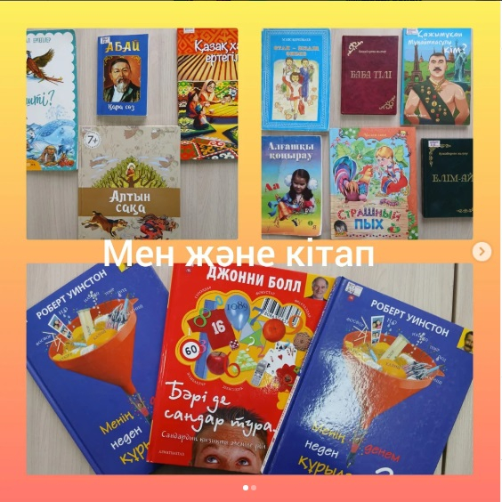 "Мен және кітап" қабырға газеттері байқауы 6-сыныптар аралығында өтті. Іс-шараның мақсаты-кітаптың адам өміріндегі маңызы, ғылым мен білімнің пайдасы жайлы түсіндіру. Әр оқырман өз ортасында кітаптың пайдасы туралы насихаттау.