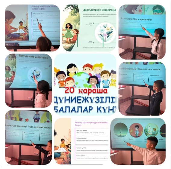 17.11.2025 жылы 2”В” сыныбында “Дүниежүзілік балалар күні қандай мереке?” тақырыбында сынып сағаты өтті.