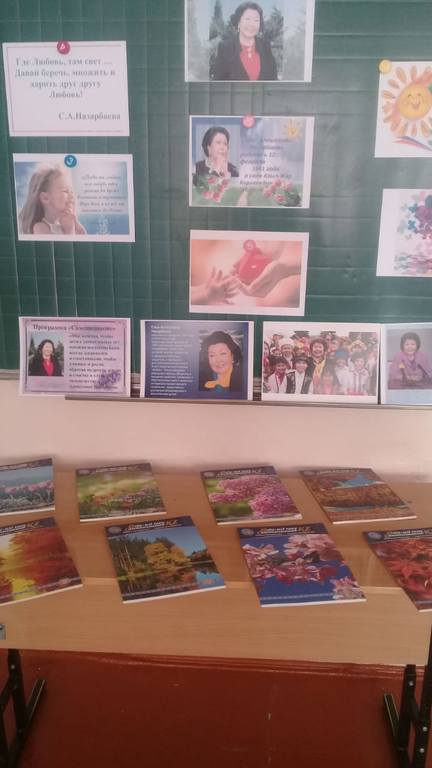 В КГУ "ОШ №134" была представлена книжная выставка  о деятельности автора программы  нравственно-  духовного  образования  Сары  Алпысовны Назарбаевой.