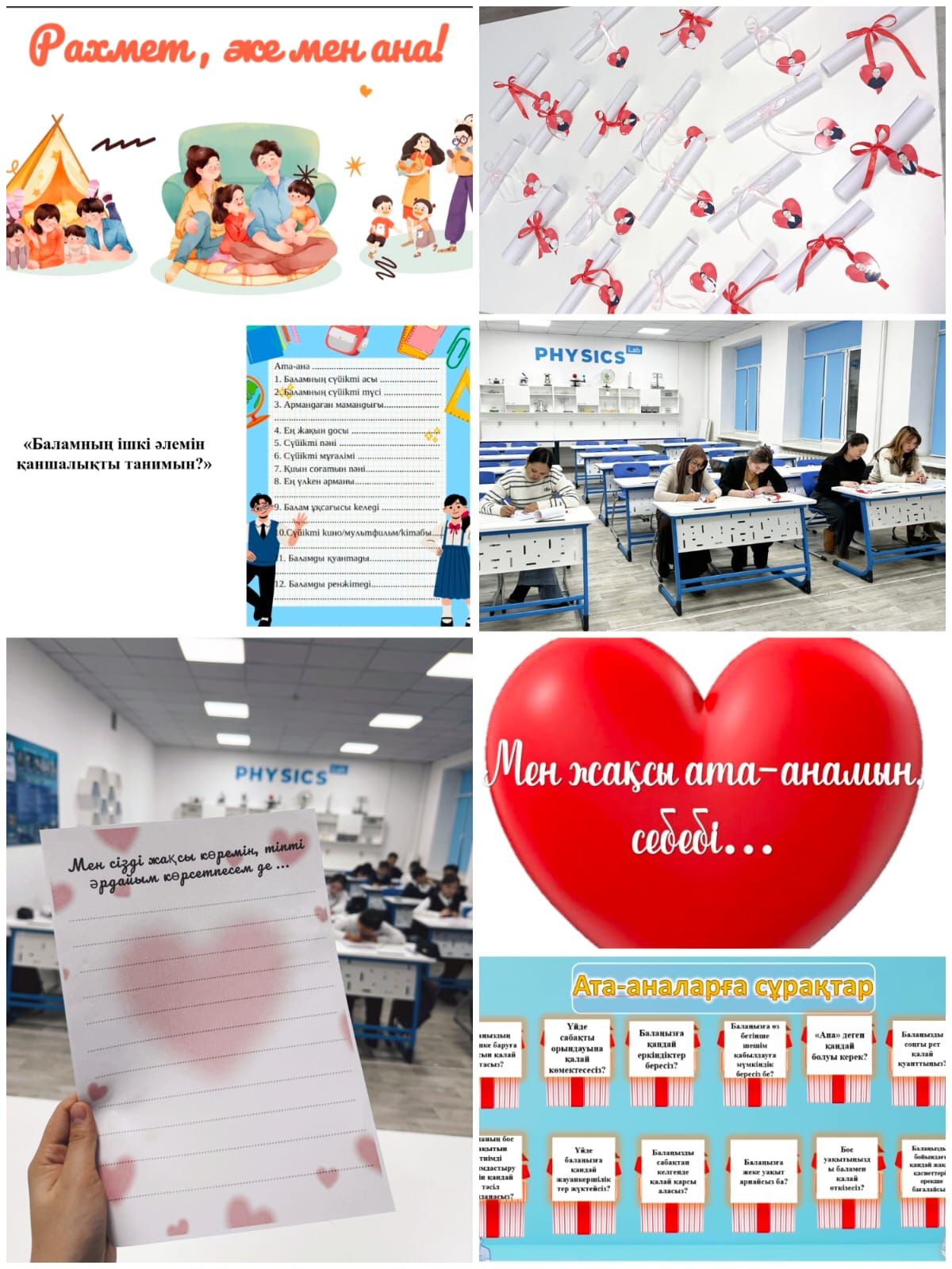 "Ата-аналар форумы" онкүндігі аясында 5 "Б" сынып оқушылары "Рахмет, әке мен ана", "Мен сізді жақсы көремін, тіпті әрдайым көрсетпесем де" атты тақырыбында ата-аналарына хат жазды. Балалар хаттарында өз жүрекжарды сөздерін арнады. Ата-аналарына сүйіспеншілігін, өздеріне деген қамқорлығы мен қолдаулары үшін алғыстарын білдірді. Әрбір хатта балалық шынайылық, мейірім мен ризашылық сезімі бар.