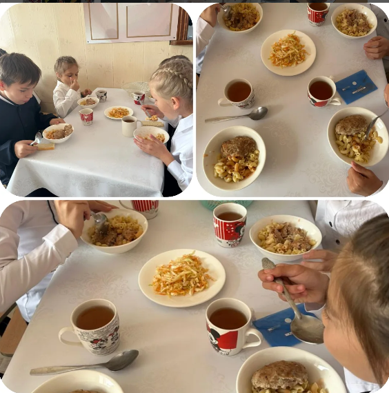 Рубрика питание: Сегодня 2.09.25г. Меню: Рошки с котлетой, хлеб р/п, капустный салат и компот.