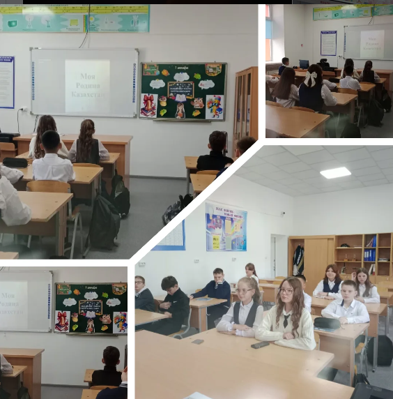 02.09.25 В 7"Б" классе на День знаний был проведён классный час на тему " Моя Родина Казахстан" была проведена беседа.