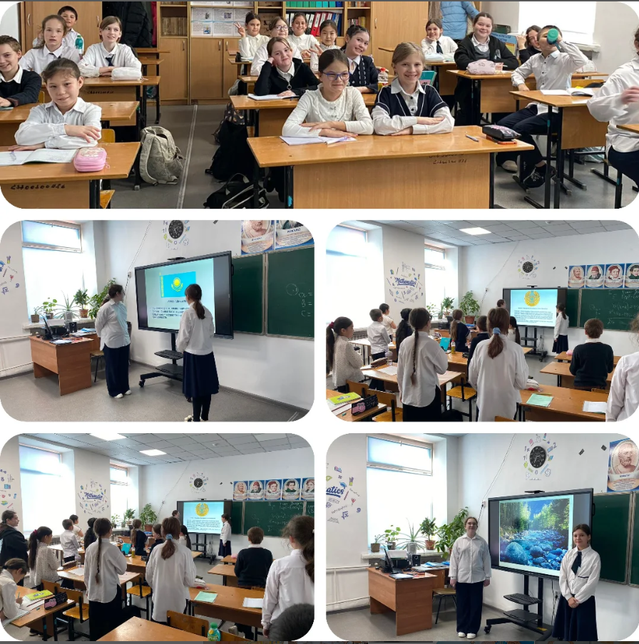 На классном часе «Моя Родина-Казахстан!» ученики 5 "А" класса узнали много интересных фактов об истории и суверенитете нашей Республики. В завершение занятия ребята всем классом дружно и гордо исполнили Государственный Гимн Казахстана. Именно так мы воспи
