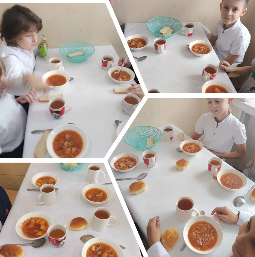 07.11.2025 г. Рубрика питание. Меню: борщ, компот из сухофруктов, хлеб и булочка с творогом.