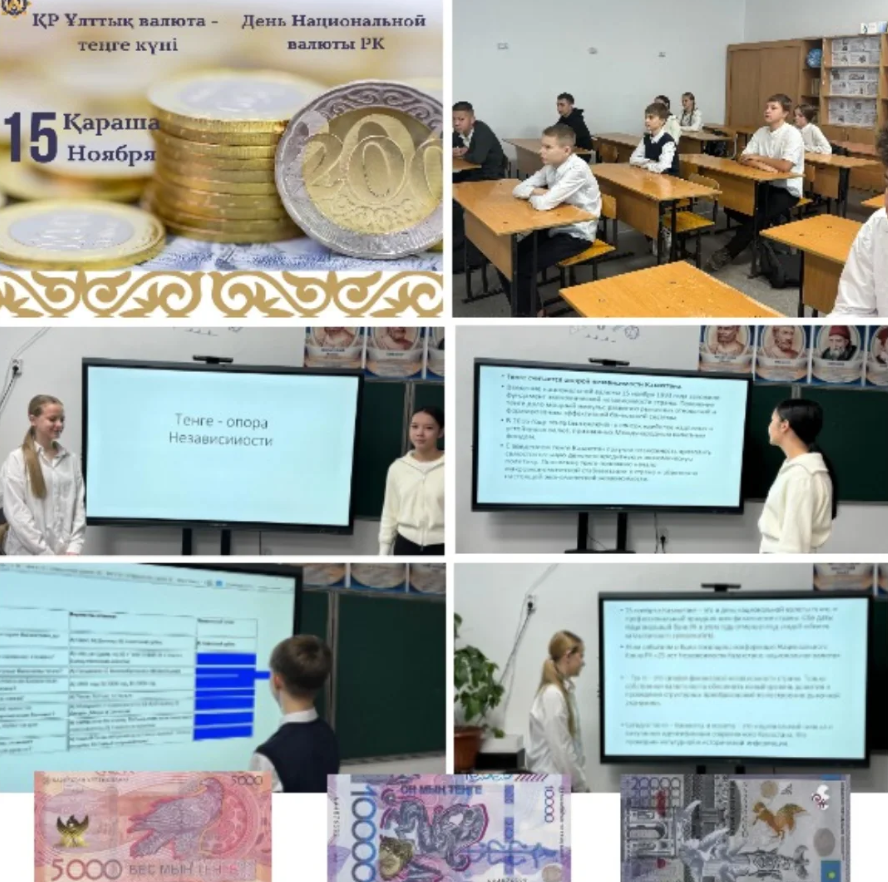В 8 «В» классе прошёл классный час на тему «Тенге – опора независимости», подготовленный Цой Дариной и Медко Викторией.