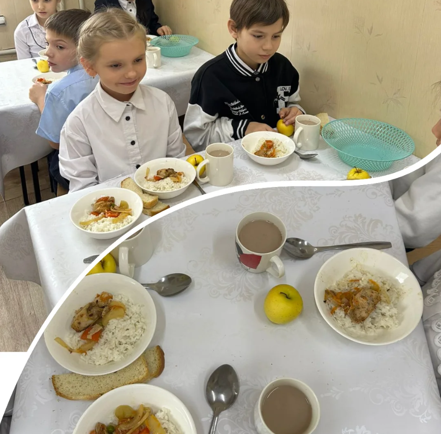 Рубрика питание: меню: овощной рис с курицей, хлеб р/п, чай с молоком и яблоко