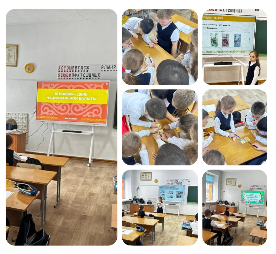 Во 2 “А” классе прошел классный час ко Дню национальной валюты -тенге.