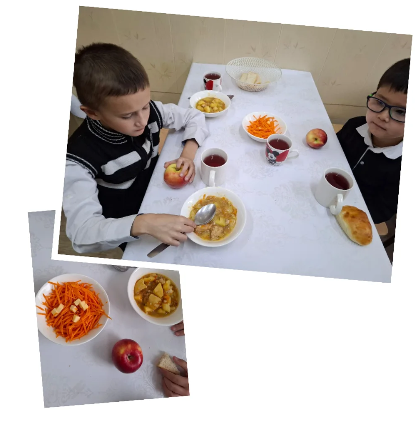 Бүгін мектеп мәзірінде: ет қосылған картоп бұқтырмасы, сәбіз салаты, нан, компот және алма.