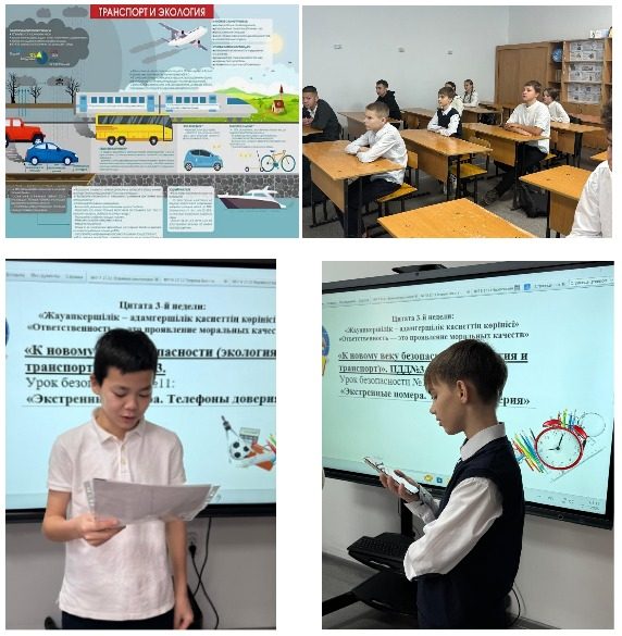 В 8 «В» классе прошёл классный час на тему «К новому веку безопасности (экология и транспорт)», подготовленный Леонтьевым Станиславом и Тулебаевым Русланом. На уроке безопасности обсудили: «Экстренные номера. Телефоны доверия».