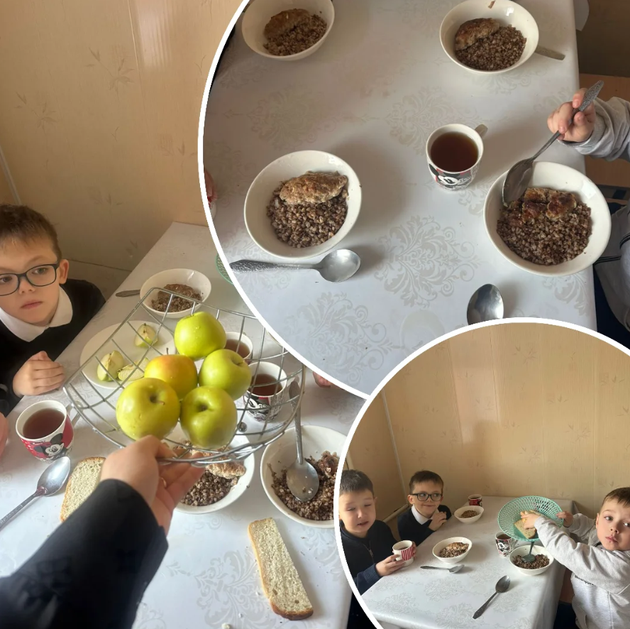 Рубрика питание: меню: гречка с котлетой, компот , хлеб р/п и яблоко.