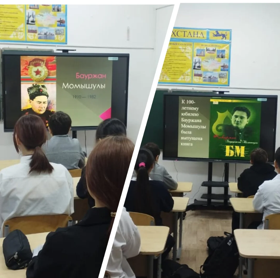 "Халық қаһарманы, жазушы Бауыржан Момышұлының туғанына 115 жыл" тақырыбында сынып сағаты.