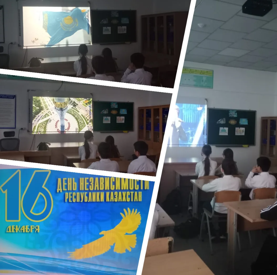 15.12.25. Қазақстанның Тәуелсіздік күніне орай 7 "Б" сыныбында. Сынып сағаты өтті. Балалар бейнеролик көрді.