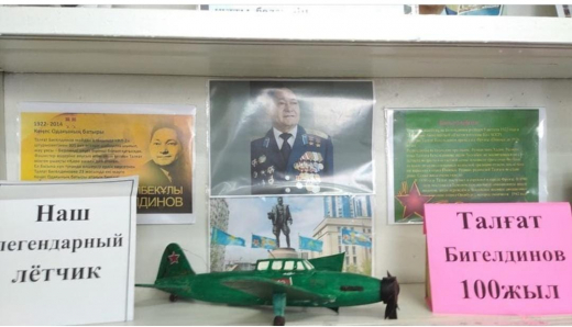 В школьной библиотеке был оформлен уголок, посвященный памяти Талғат Бигелдинова под названием «Наш легендарный летчик»