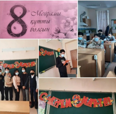9А сыныбында 8-Наурыз халықаралық әйелдер күніне арналған сынып сағаты өткізілді. Ер балалар қыздарды құттықтап өз жылы лебіздерін білдірді. Мақсаты: мейірімділікке, сый құрметке тәрбиелеу.