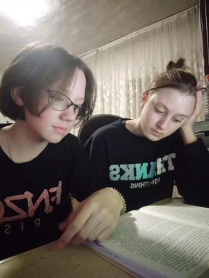 "Оқуға құштар мектеп" жобасы аясында оқушылардың көктемгі демалыс уақыттарында отбасымен кітап оқу сәттері Кургановы Эвелина 7 б класс и Анастасия 8б класс