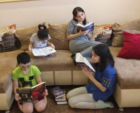 "Оқуға құштар мектеп" жобасы аясында оқушылардың көктемгі демалыс уақыттарында отбасымен кітап оқу сәттері Хадзиева Эниса 7 б класс и Лейла 5 б класс