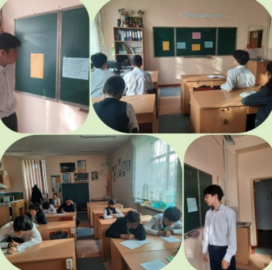 9А сыныбында. «Жұмыс орнындағы еңбекті қорғау және қауіпсіздік жөніндегі маман» тақырыбында сынып сағаты өткізілді. Сынып жетекшісі: Абдикаримова С.М.