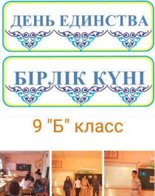 2022 жылдың 25 сәуірінде 9"Б" сыныбында "Бірлік күні"тақырыбында сынып сағаты өтті. Оқушылар бейне материалдар көріп, іс-шараға белсенді қатысты.