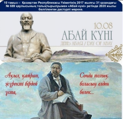 10.08.22 ж Абай күніне орай өткізілген, Абай шығармашылығын жатқа оқу бойынша «Абайды оқы, таңырқа!» атты челленджге 5 «А» сынып оқушысы Зияда Кәусар қатысты. Сынып жетекшісі: Амирбекова П.Т.