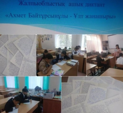 8 сентября 2022 года в честь Дня языков народа Казахстана и 150 - летнего юбилея Ахмета Байтурсынулы учащиеся 6-8 классов на тему «Ахмет Байтурсынулы-Ұлт жанашыры написал общеобластной открытый диктант.