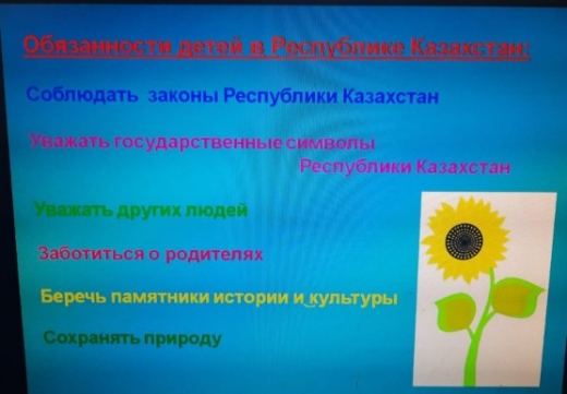 3 Б сыныпта "Қазақстандағы балалардың құқықтары"тақырыбында сынып сағаты өткізілді