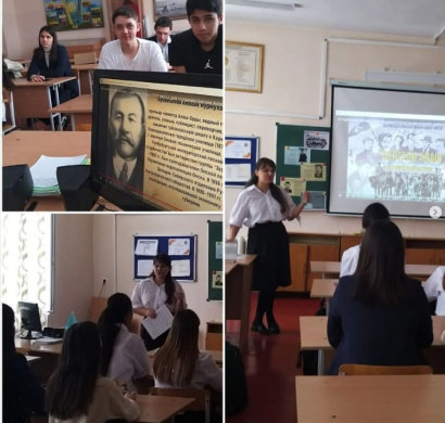 В 9 В классе прошел классный час, посвящённый 105-летию партии Алаш. Кл.руководитель Осипова Е.В.