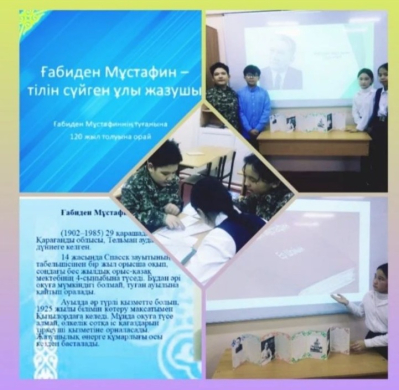 Ғабиден Мустафиннің туылғанына -120 жыл толуына орай ақынның шығармашылығы мен таныстыру мақсатында сынып сағаты өтті.